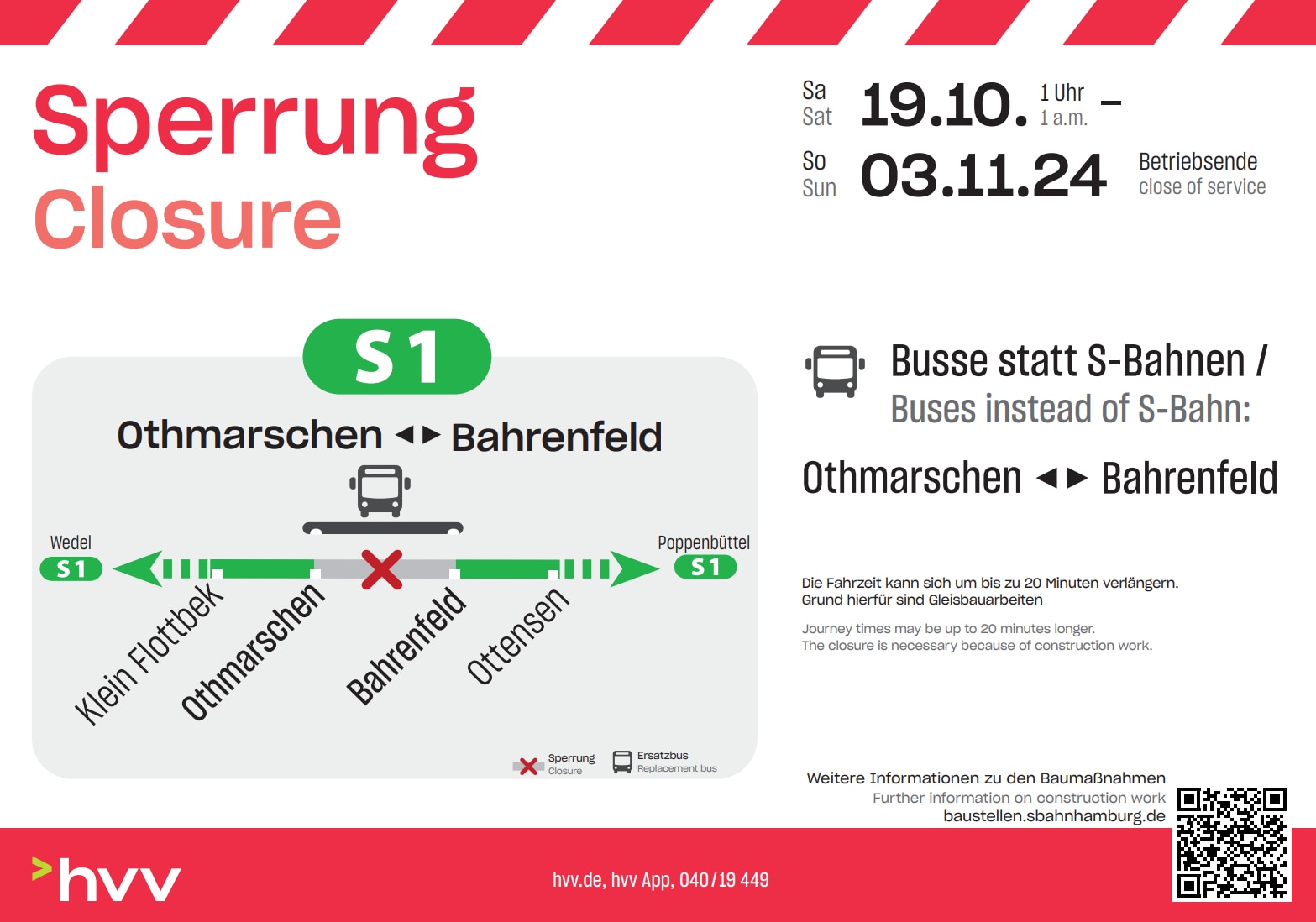 S1: Sperrung zwischen Othmarschen und Bahrenfeld