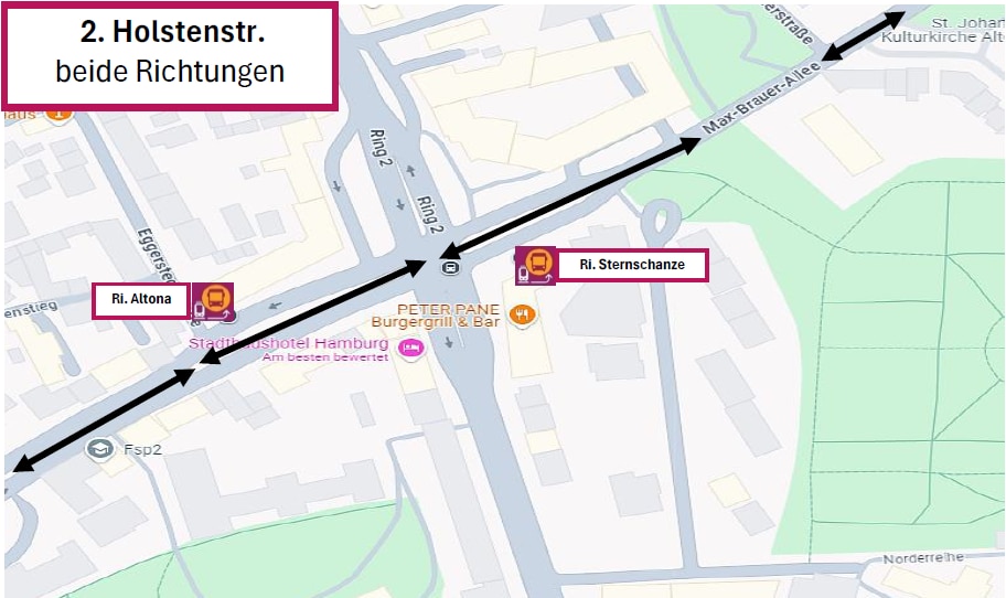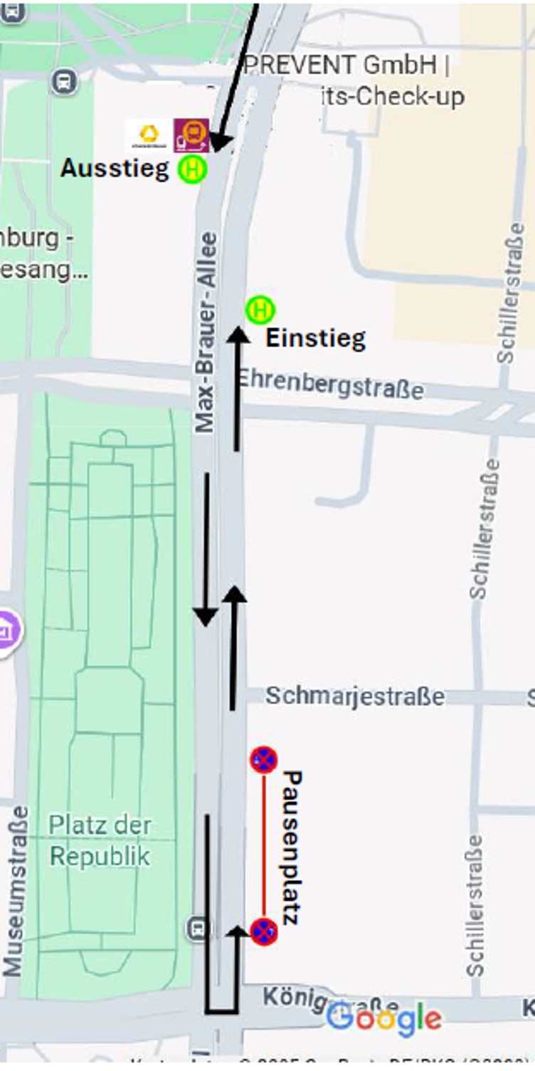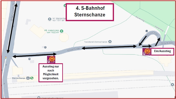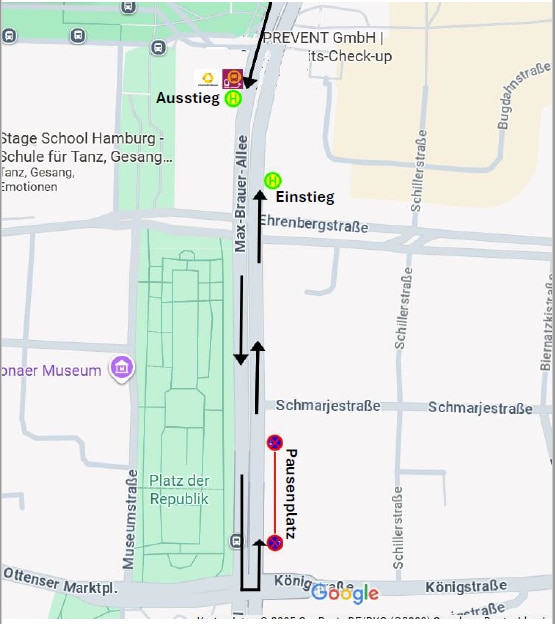 Dies sind die Wegeskizzen für die Haltepunkte der Busse: